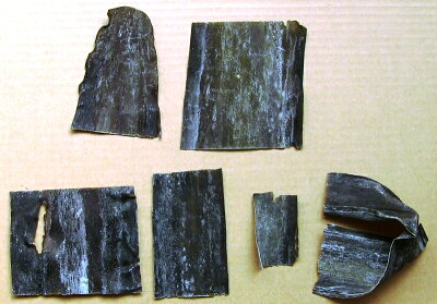 【右上】根部 【左上】胴(葉)部【右下】破れ【右下2番目】細 【左下2番目】短 【左下】曲がり上部の部位が混ざっています。