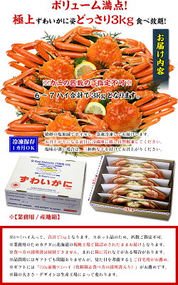 【メガ盛3kg】ボイルずわいがに姿6〜7ハイ食べ放題♪※業務用産地箱のため食べ方の説明書は同封不可【カニ】【かに】【蟹】【ズワイガニ】
