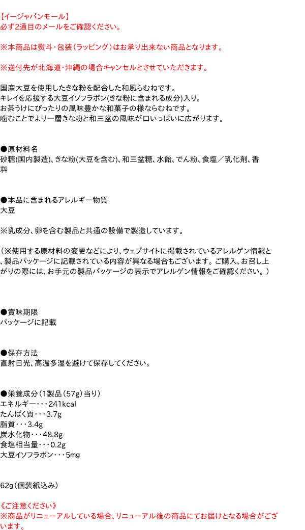 [関連キーワード:お菓子 おやつ 駄菓子 ラムネ 清涼菓子 きなこ ]まとめ買いはコチラ(激安ケース) >>【イージャパンショッピングモール】内のみのお買い物は、送料一律でどれだけ買っても同梱する事が出来ます。