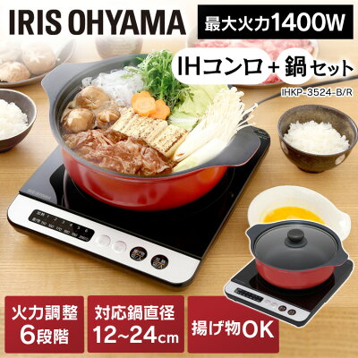 IHコンロ 鍋 セット 1400W IHKP-3524-B ブラックIHコンロ IHクッキングヒーター IH コンロ 卓上 鍋 鍋セット IH調理器 卓上コンロ 料理 1口 鍋 パーティ パーティー ひとり暮らし 一人暮らし 2人 アイリスオーヤマ